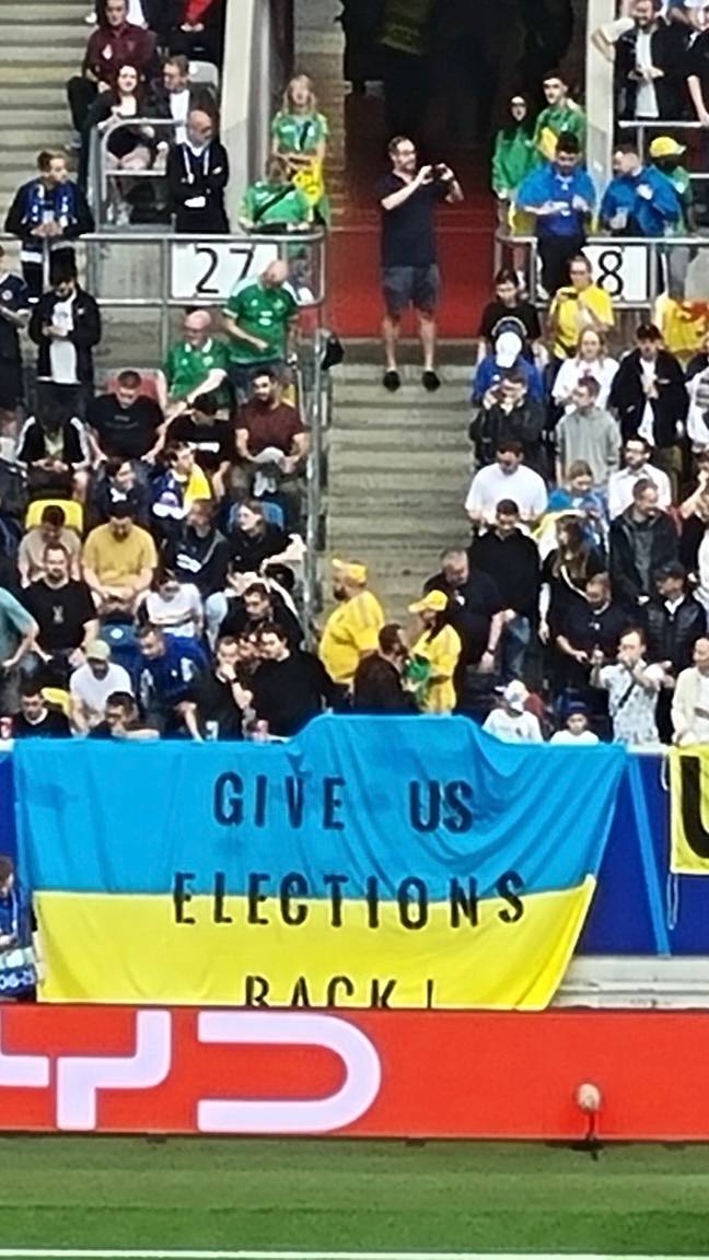 На матче Словакия-Украина вывесили флаг Украины с надписью «Дайте нам выборы».