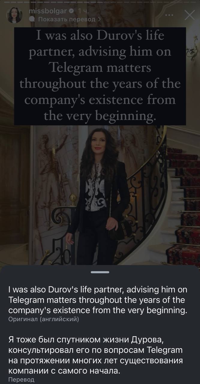 Срочно в номер: предполагаемая мать троих детей Павла Дурова Ирина Болгар заявила, что консультировала бизнесмена по вопросам Telegram с самого его появления.