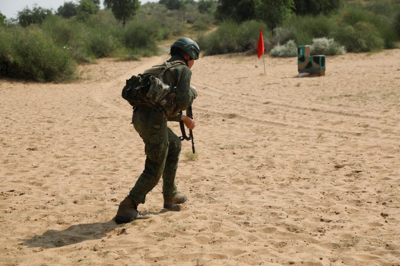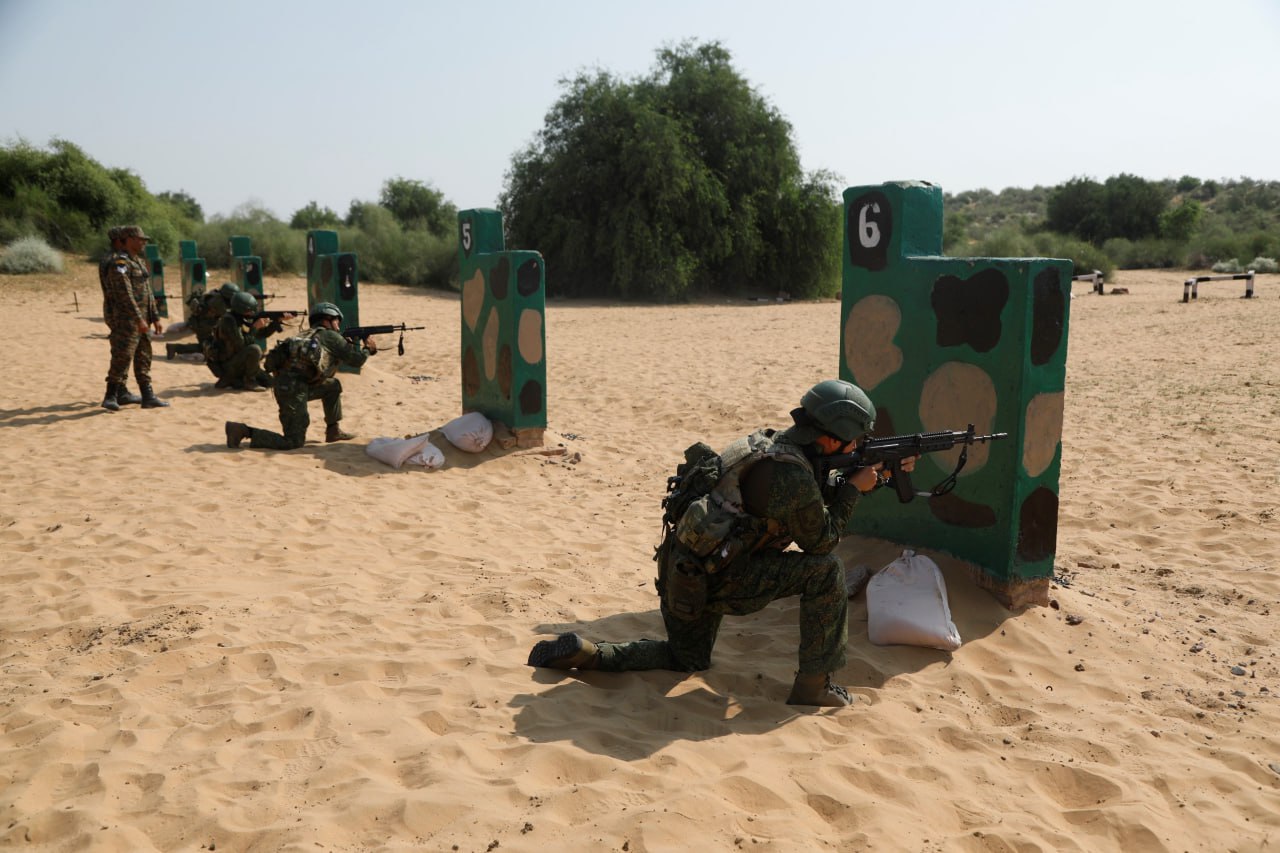 В рамках совместного российско-индийского учения «Индра-2025» на полигоне «Махаджан» в индийском штате Раджастхан с участниками проведены занятия по преодолению полосы препятствий и армейской тактической стрельбе.