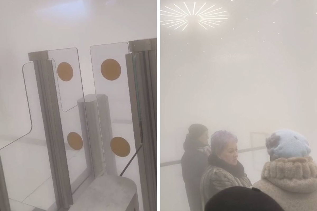 На кадрах видно, что терминал в дымке из-за пара, пассажиры около турникетов удивленно смотрят на происходящее и шутят, что они оказались в мультике «Ежик в тумане».