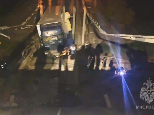 В момент происшествия на мосту находились легковой автомобиль и грузовик. Сейчас сотрудникам ведомства удалось деблокировать двух пострадавших. Их направили к медикам. На данный момент на месте происшествия задействованы 43 специалиста и 16 единиц техники.