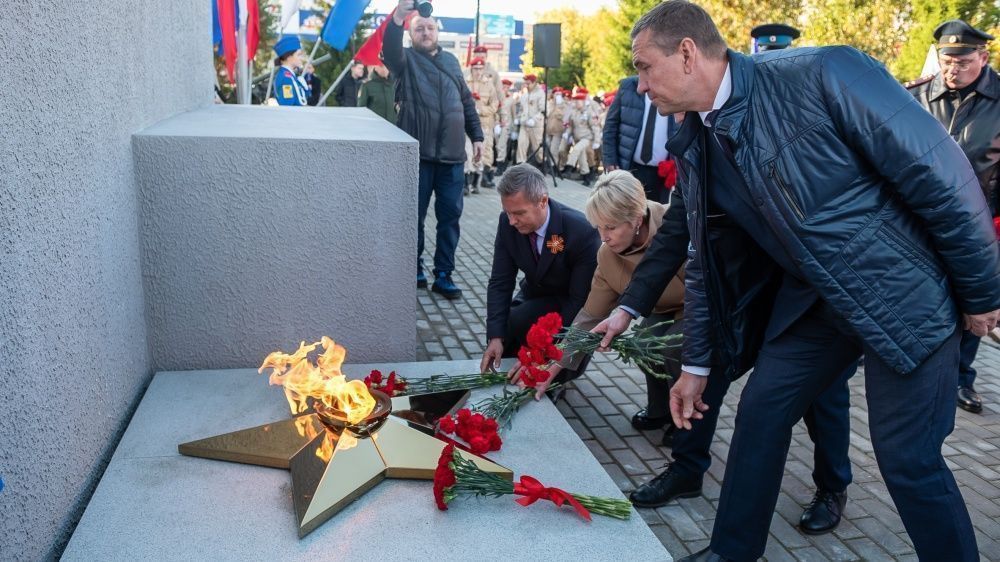 Перед тем, как зажечь Вечный огонь, память отважных солдат почтили минутой молчания. Участник специальной военной операции Андрей Нырков и юный представитель "Юнармии" Данил Редкозубов доставили капсулу с огнём от мемориала на набережной Грина к монументу Маршала Конева. После этого состоялась церемония возложения цветов к памятнику прославленному военачальнику.