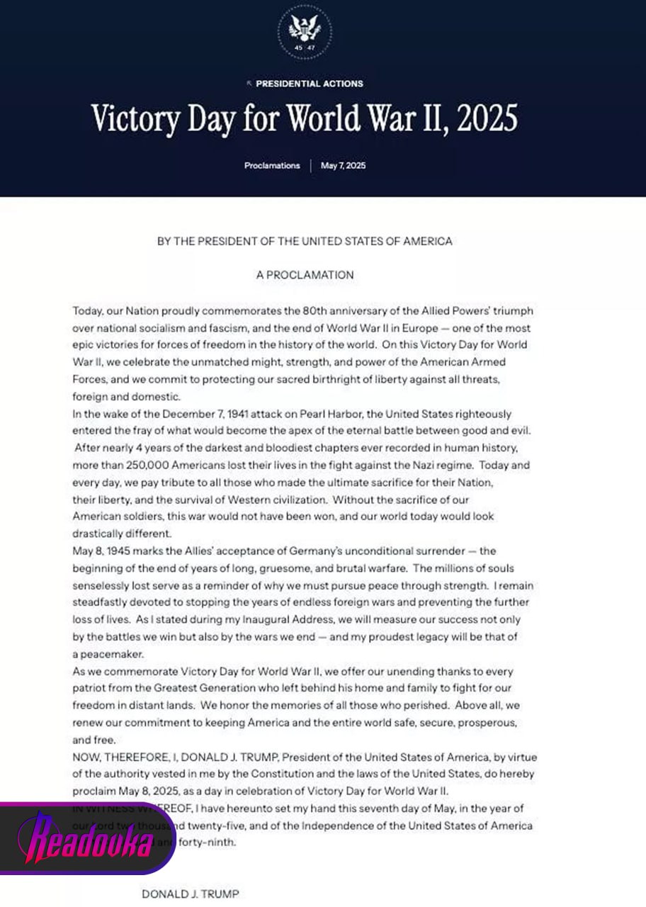«Сделали больше, чем любая другая страна» — Трамп объявил 8 мая Днем Победы во Второй мировой войне