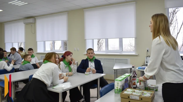 Ребята продегустировали местную продукцию – молоко, кефир, йогурты, сыры. После дети отправились на свой первый агроурок. Студенты предложили школьникам отгадать, какому продуктовому бренду принадлежит тот или иной логотип. Также подготовили ребусы, связанные с продуктами питания. Вторую часть занятия провела представитель молокозавода. Дети смогли почувствовать себя настоящими технологами. Им раздали питьевые йогурты и разнообразные добавки – сиропы, мюсли, семечки. Им предстояло смешать ингредиенты в произвольных пропорциях и решить, стали бы потребители покупать йогурт с таким вкусом или нет.