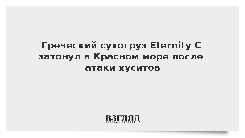 Греческий сухогруз Eternity C, следовавший под флагом Либерии, затонул в Красном море у побережья Йемена из-за атаки со стороны хуситов, передает ТАСС со ссылкой на Reuters.
