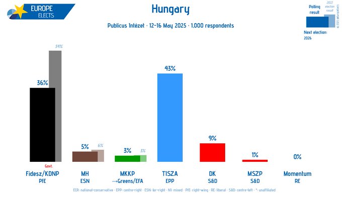 В Венгрии партия Орбана «Фидес» теряет популярность. Её теперь опережает центристская партия «Тиса». Выборы в Венгрии должны пройти в апреле 2026 года.