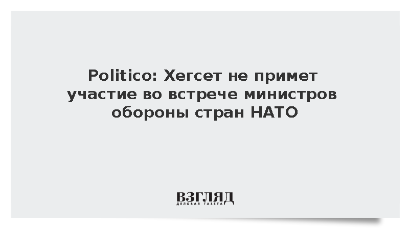 По данным Politico, глава Пентагона Пит Хегсет не примет участие во встрече министров обороны стран НАТО в Брюсселе, передает РИА «Новости».