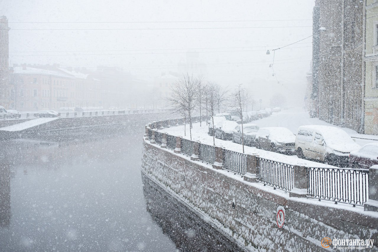 Петербург укутало «одеялом». Посмотрите, как плавно на город опускается снег