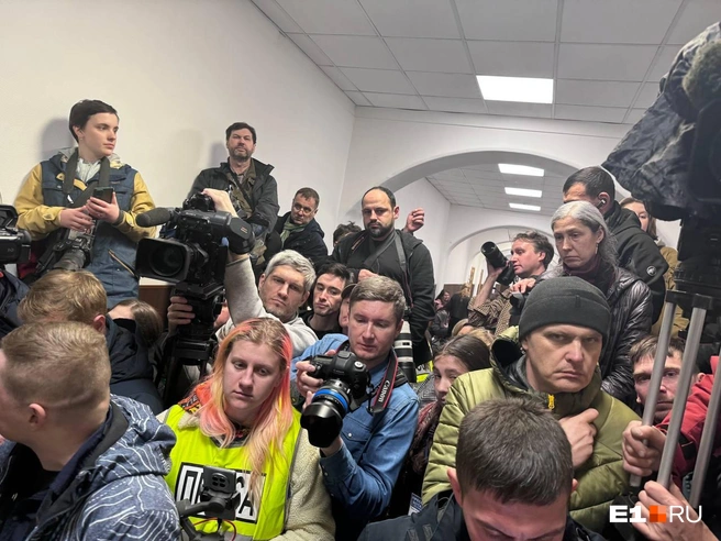 В коридоре суда - аншлаг. Внутрь пропустили журналистов. Скоро должны привести предполагаемых террористов.