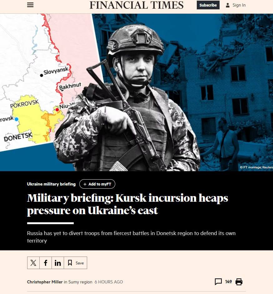ВС РФ продолжают прорываться сквозь украинскую оборону и приближаются к полному контролю над территорией ДНР, пишет Financial Times.