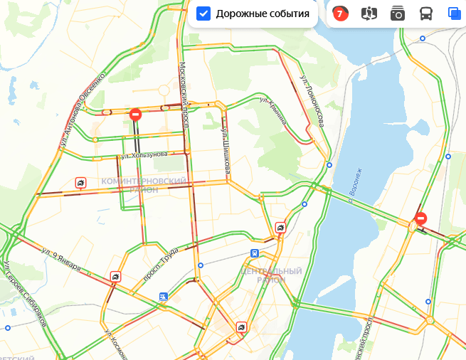 7-балльные пробки сковали Воронеж утром четверга, 12 декабря. Заторы можно увидеть на интерактивной карте.