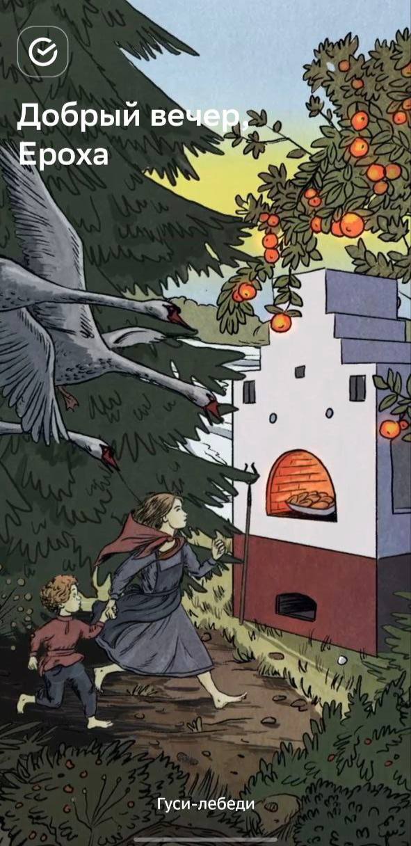 В коллекции не только классические герои, но и локальный фольклор со всей России. Например, якутская история про Карах-симирики — девочку, которая играла в прятки с медведем. У каждой заставки свой стиль, рисовка и вайб.