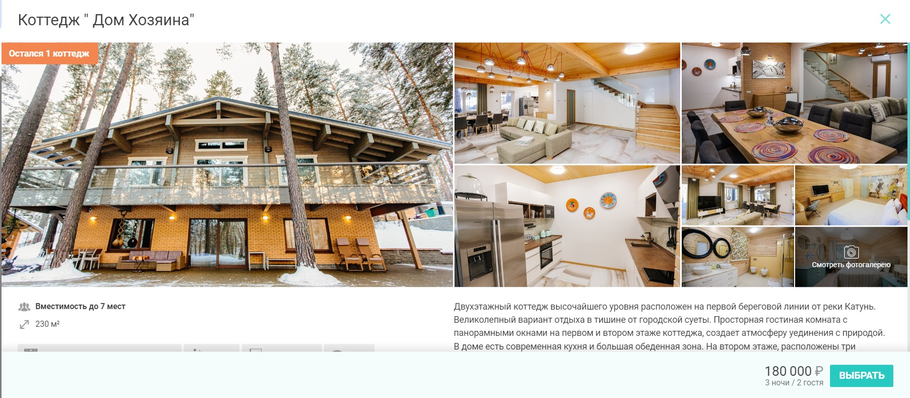 Дороже всех стоит аренда гигантского «Дома хозяина» из кирпича и дерева, площадь которого составляет 230 кв. м. В момент подготовки материала он был свободен на 28 апреля–1 мая — за проживание в эти дни придется заплатить 180 тысяч рублей.