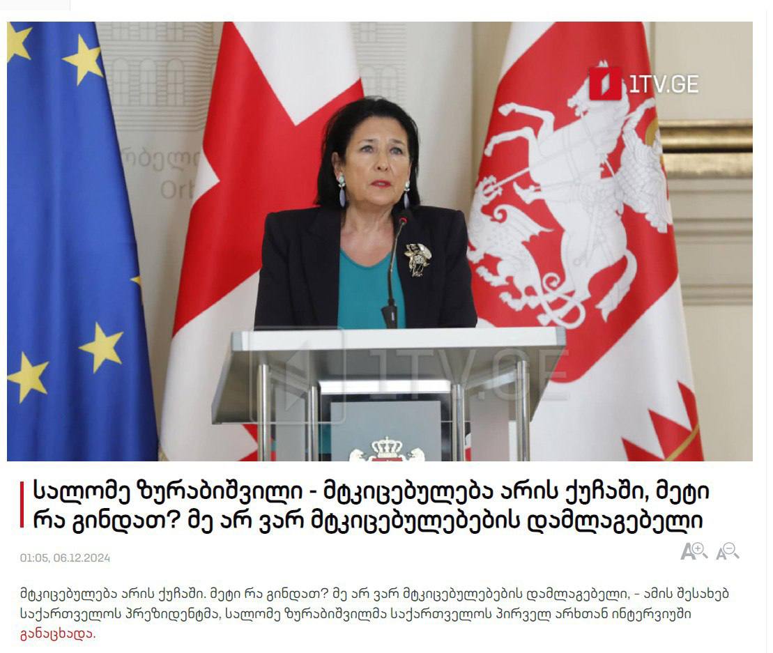 🤡Зурабишвили заявила, что «грузинский майдан» — это доказательство вмешательства России в выборы в Грузии.