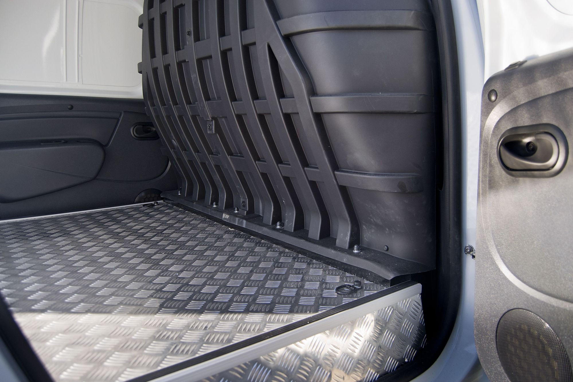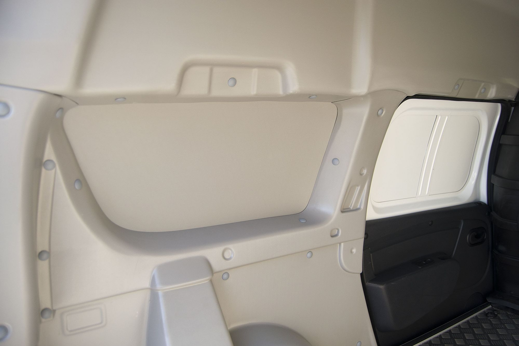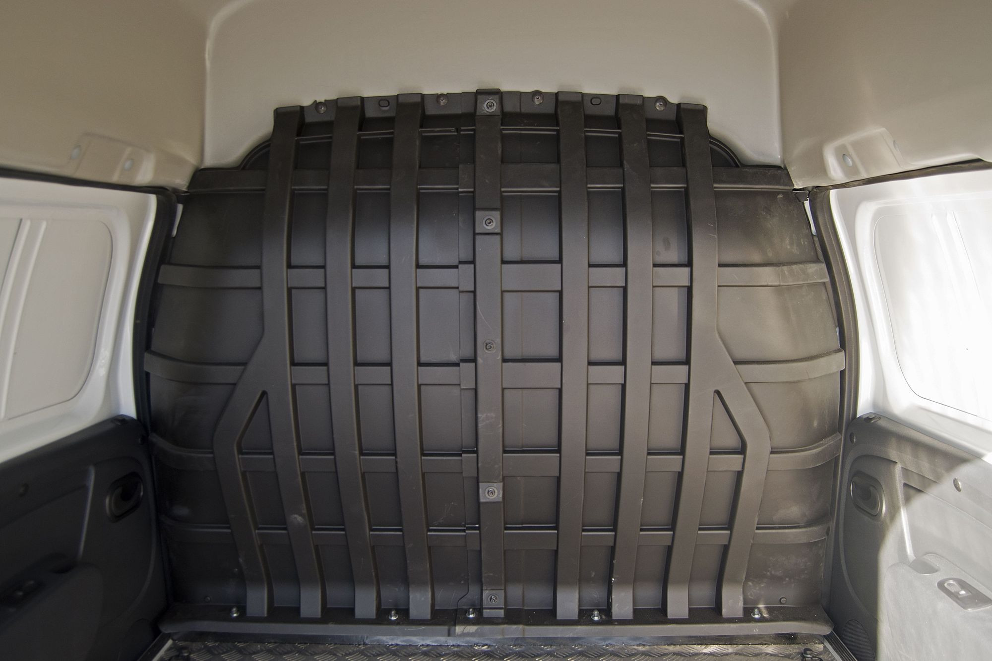 Пол фургона отделан металлом, боковые стенки – композитным материалом. Это хорошо. Не очень хорошо, что стоковые обшивки задних боковых дверей, которые в Ларгусе быстро царапаются, остались на месте и при неправильной загрузке окажутся в зоне риска. А грузить машину будут как раз преимущественно в той зоне грузового отсека: основная масса в этом случае окажется внутри базы, а не в заднем свесе, что критически важно для сохранения управляемости при большой нагрузке. Но не будем бить тревогу из-за такой мелочи, тем более что такелажные петли имеются уже с завода и закрепить за них груз при желании сможет даже безрукий дельфин.