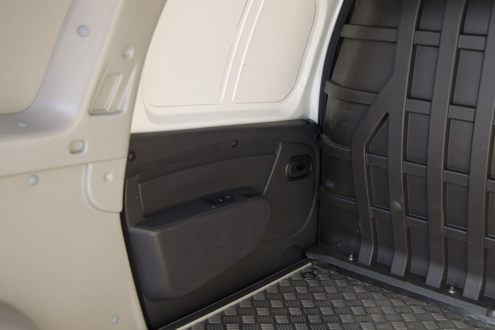 Кузов тут точно такой же, как и у пассажирской машины. Отличие только в наличии окон у пассажирской версии, но это неважно. Важно, что сохранились обе задние двери, и погрузку-выгрузку можно осуществлять не только через задние распашные двери, но и через эти боковые. Возможность подойти с любой стороны – существенный плюс для городской развозной машины.
