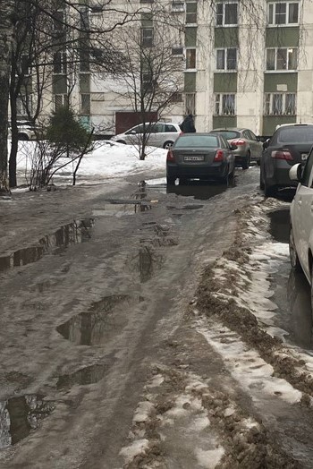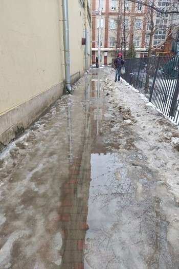 Там, где нет луж, петербуржцы балансируют на льду. Как передали корреспонденты "Делового Петербурга", каток образовался на набережной канала Грибоедова и во дворе музея искусства Санкт-Петербурга XX-XXI века. Сложно пройти по дворам в спальных районах города.
