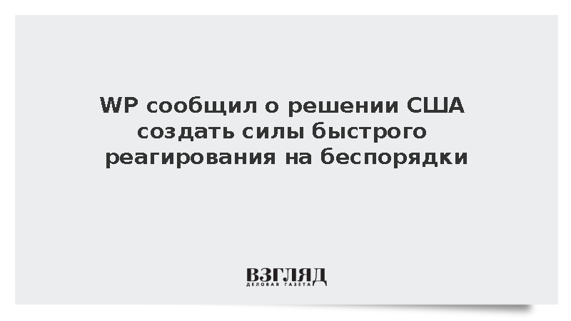 Планы по созданию сил быстрого реагирования на гражданские беспорядки в США рассмотрела администрация Трампа, передает РИА «Новости» со ссылкой на Washington Post.