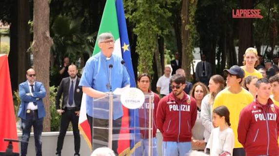 (LaPresse) Don Patriciello, il parroco del Parco Verde di Caivano, durante il suo intervento dal palco si rivolge al Presidente del Consiglio seduta in prima fila e dandole del tu, in lingua napoletana, le dice:" Giorgia 'O vveco e nun 'o crero", che in italiano significa: "Giorgia quello che vedo faccio fatica a crederlo". Il parroco è intervenuto all'inaugurazione del nuovo centro sportivo, ex Delphinia, riqualificato e intitolato a Pino Daniele.