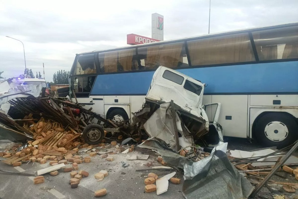 Сегодня утром в Кропоткине 21-летний водитель «Газели» на перекрестке не уступил дорогу и столкнулся с междугородним автобусом «Неоплан», который следовал по маршруту «Севастополь - Махачкала». От удара «Газель» отбросило в грузовой «Вольво».