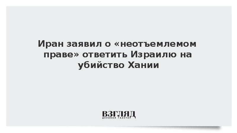 Багери Кани подчеркнул, что Израиль «перешел красную линию, убив Исмаила Ханию», он поставил под угрозу безопасность и стабильность в мире и в регионе, передает ТАСС со ссылкой на заявление иранского МИД.