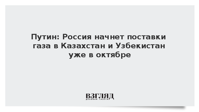 Россия уже в октябре начнет поставлять по 3 млрд кубических метров российского газа в Казахстан и Узбекистан, заявил президент России Владимир Путин на пленарном заседании международного дискуссионного клуба «Валдай».