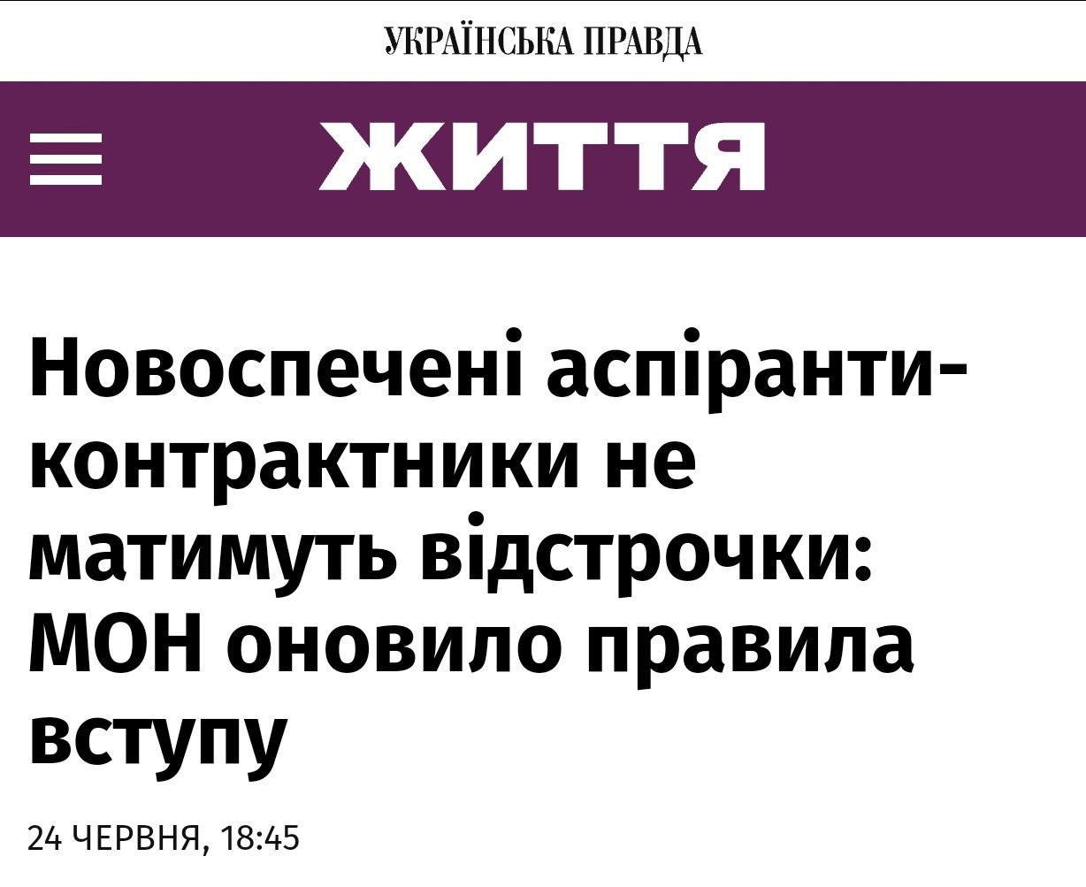 На фоне стремительного роста количества украинских мужчин призывного возраста, поступающих в аспирантуру, Министерство образования Украины изменило правила поступления.
