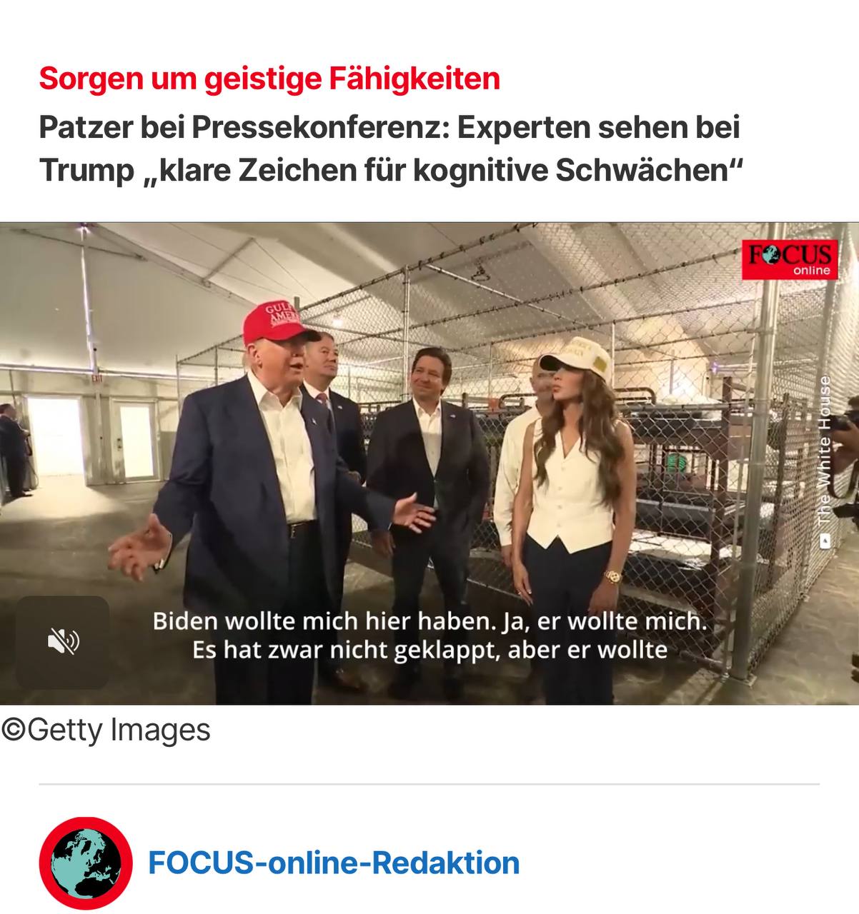 Все больше наблюдателей отмечают наличие когнитивных проблем Дональда Трампа. Эксперты видят «явные признаки когнитивных слабостей» пишет Фокус. Отмечу, с некоторым удовлетворением, что о некоторых симптомах деменции у Трампа, я рассказал больше месяца назад в одном из эфиров. Теперь и американские источники указывают на проблему