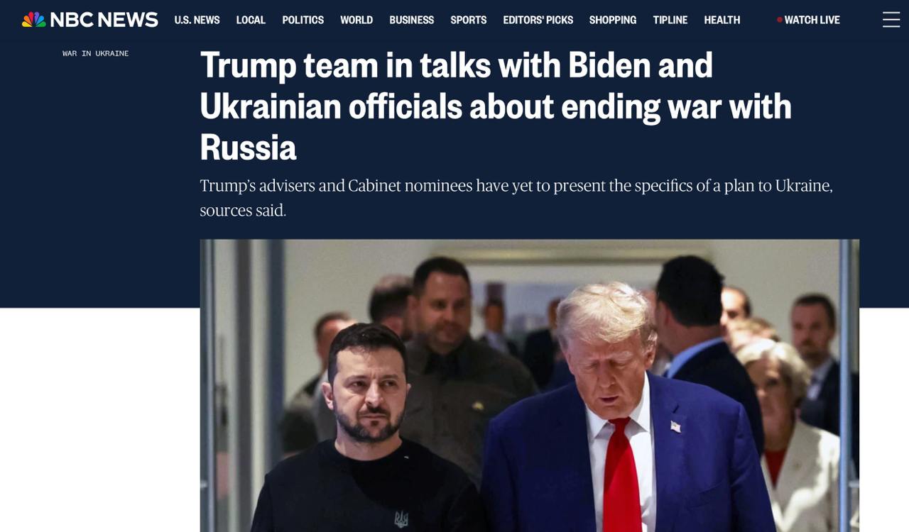 π¬ΠΠΎΠΌΠ°Π½Π΄Π° Π’ΡΠ°ΠΌΠΏΠ° Π²Π΅Π΄Π΅Ρ ΠΏΠ΅ΡΠ΅Π³ΠΎΠ²ΠΎΡΡ Ρ ΠΠ°ΠΉΠ΄Π΅Π½ΠΎΠΌ ΠΈ ΡΠΊΡΠ°ΠΈΠ½ΡΠΊΠΈΠΌΠΈ ΠΎΡΠΈΡΠΈΠ°Π»ΡΠ½ΡΠΌΠΈ Π»ΠΈΡΠ°ΠΌΠΈ ΠΎ ΠΏΡΠ΅ΠΊΡΠ°ΡΠ΅Π½ΠΈΠΈ Π²ΠΎΠΉΠ½Ρ Ρ Π Π€, β ΠΈΡΡΠΎΡΠ½ΠΈΠΊΠΈ ΡΠ΅Π»Π΅ΠΊΠ°Π½Π°Π»Π° NBC