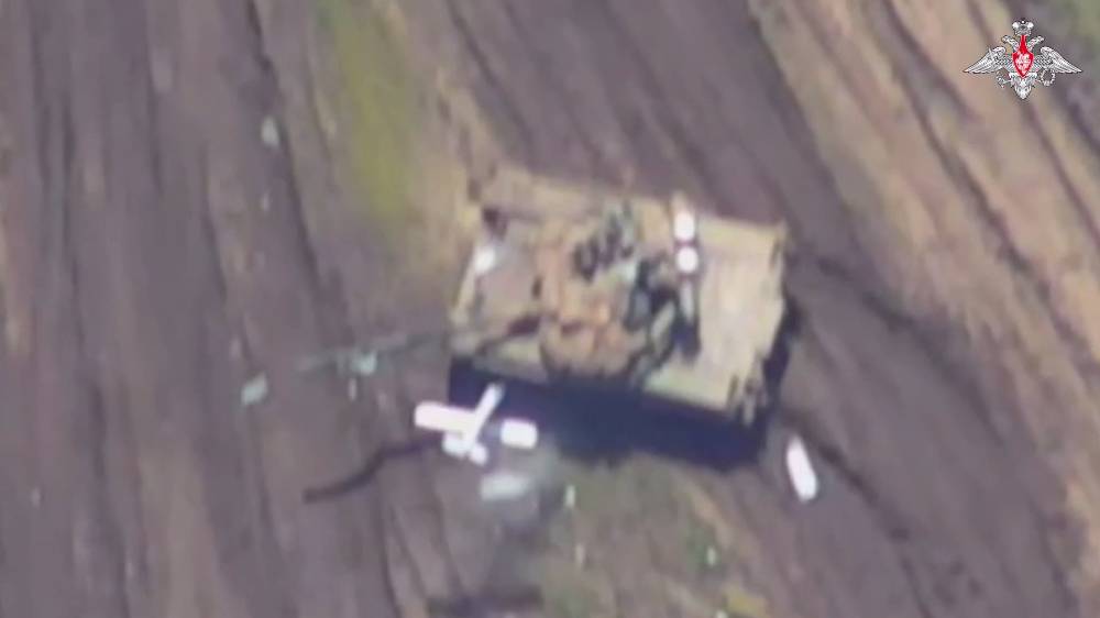 Российский "Ланцет" уничтожил танк ВСУ на Херсонском направлении. Видео © Telegram / Минобороны России