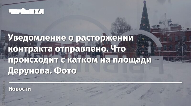 В пятницу, 15-го декабря, в день, когда планировали пробный запуск ледового катка на площади Дерунова, подрядчику, выполняющему работы, направили уведомление о расторжении контракта. Причина — срыв сроков.