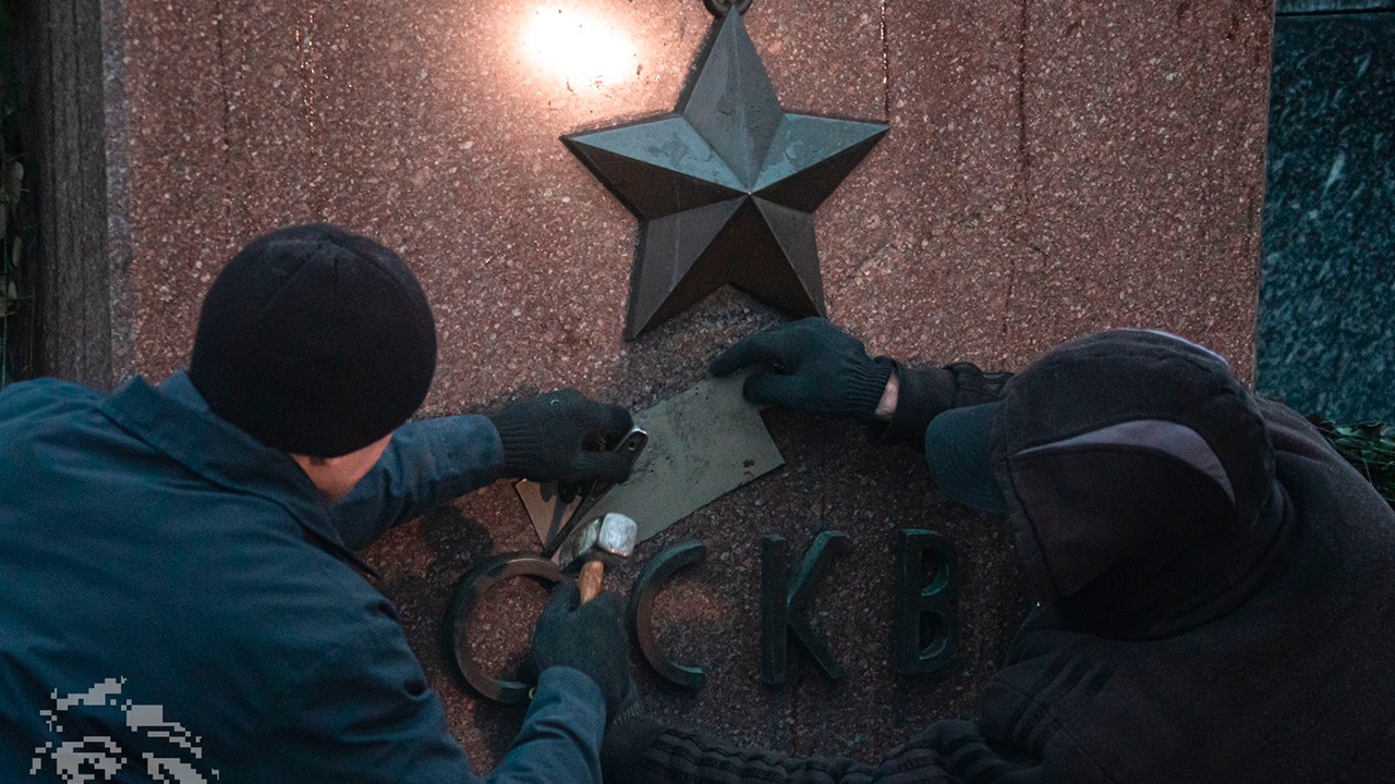 Кроме того, рабочие демонтировали изображение советской медали «Золотая Звезда».