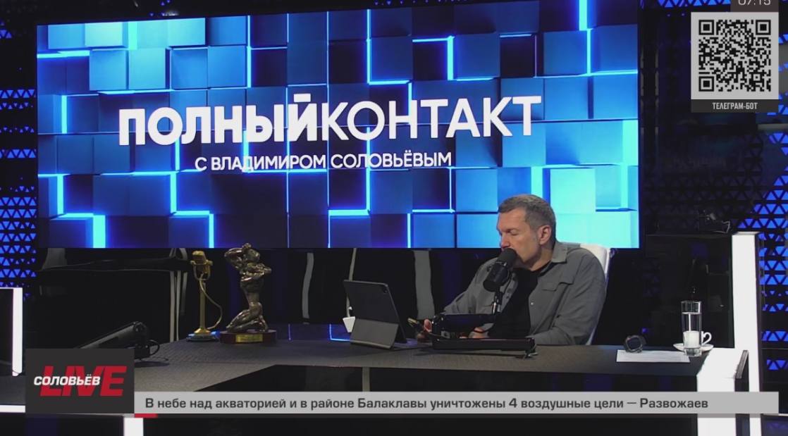 Прямо сейчас на СоловьёвLive и ВестиFM — самая популярная утренняя программа в стране — «Полный контакт с Владимиром Соловьёвым».