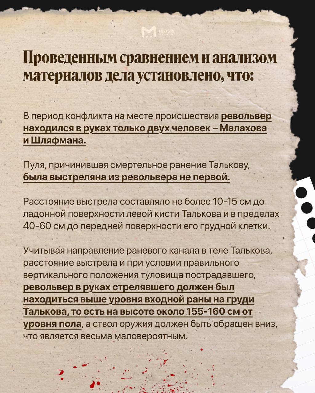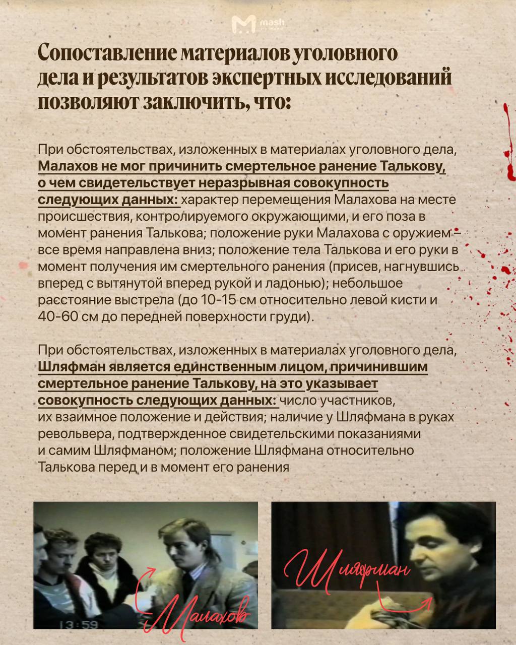 Уникальные документы по делу об убийстве музыканта Игоря Талькова — Mash на Мойке впервые публикует результаты экспертных исследований и сделанные на их основании выводы. Сегодня экс-директора артиста Валерия Шляфмана приговорили заочно к 13 годам с учётом позиции прокуратуры Петербурга.