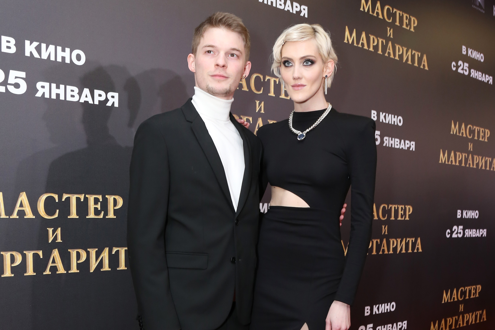 Для светского мероприятия Полина выбрала черное платье с разрезами, которое эффектно подчеркнуло ее фигуру. Актриса дополнила образ колье, легкой укладкой и макияжем с акцентом на глаза. Ее избранник тоже отдал предпочтение черному цвету. Он вышел в свет в темном костюме, который освежила белая водолазка.
