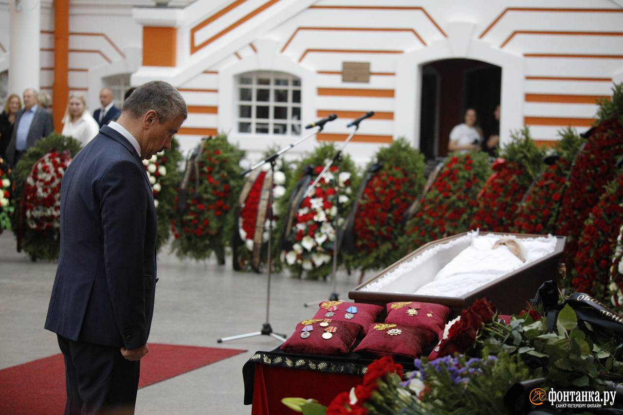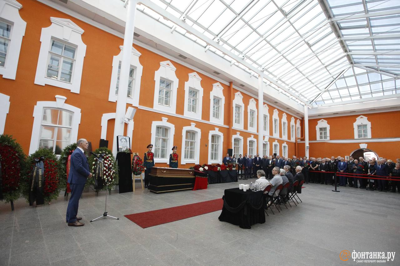 На прощание в атриум Петропавловской крепости пришли больше сотни человек — как действующих чиновников и депутатов, так и бывших коллег.