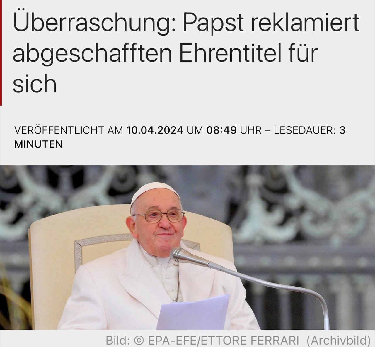 Папа Франциск указом вернул себе титул «Patriarca dell'Occident» - Патриарх Запада. Этот титул был отменен его предшественником Бенедиктом XVI. Это сигнал Ватикана, который можно расценивать как попытку поиска взаимодействия с Патриархами других церквей. Интересно, что Понтифик принял решение неожиданно, без консультаций со своим окружением.