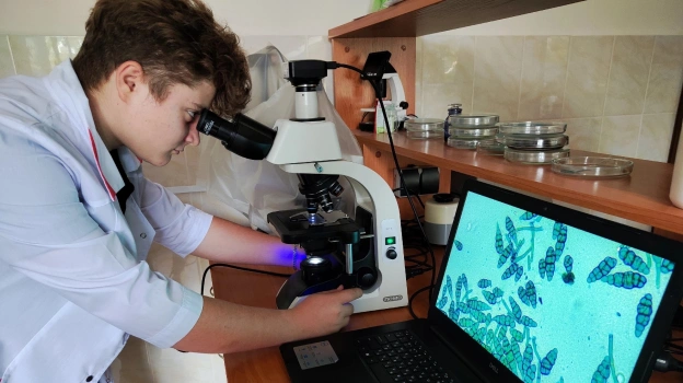 – Алена Романова защитила работу, посвященную семенной инфекции озимой пшеницы, в номинации «Микробиология, клеточная биология, физиология растений». Тема Александра Пацаловского касалась изучения устойчивости гибридов сахарной свеклы к различным заболеваниям, он выступил в номинации «Агробиология, агрохимия, защита растений», – рассказала руководитель объединения «Вселенная под микроскопом» Елена Герр.