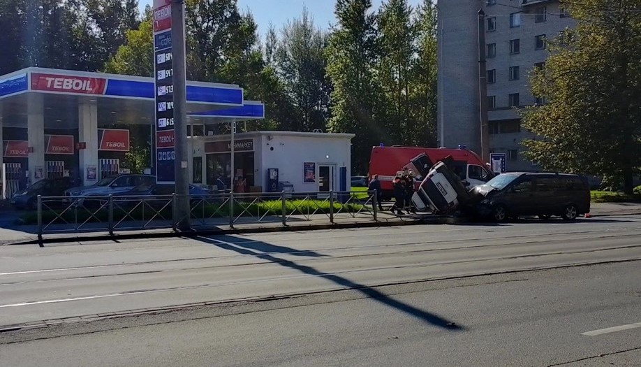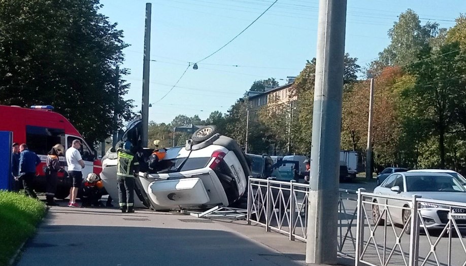 На Торжковской улице у дома №19 легковой автомобиль вылетел на тротуар и перевернулся на крышу. Судя по фотографиям очевидцев, в столкновении также участвовал автомобиль минивэн.