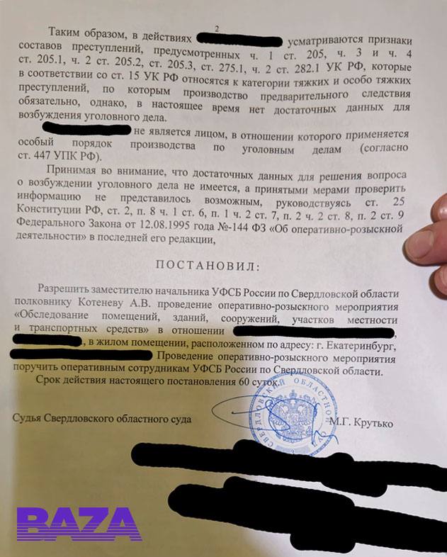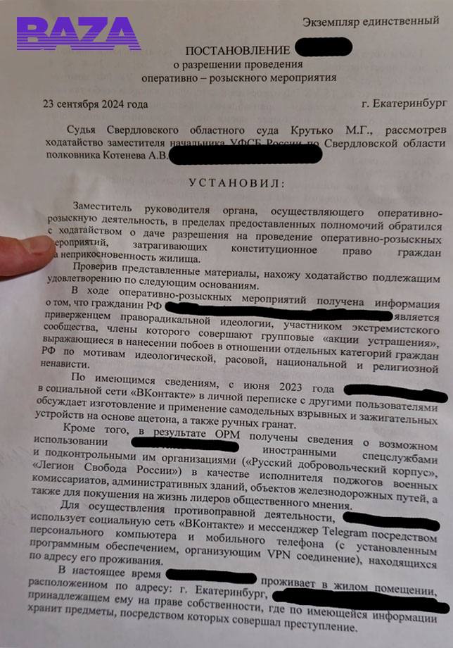 По словам Олега (имя изменено) силовики пришли к нему домой около 6 утра. Они попросили открыть дверь, чтобы провести осмотр квартиры и телефона парня. Также они показали постановление о проведении ОРМ в его квартире.