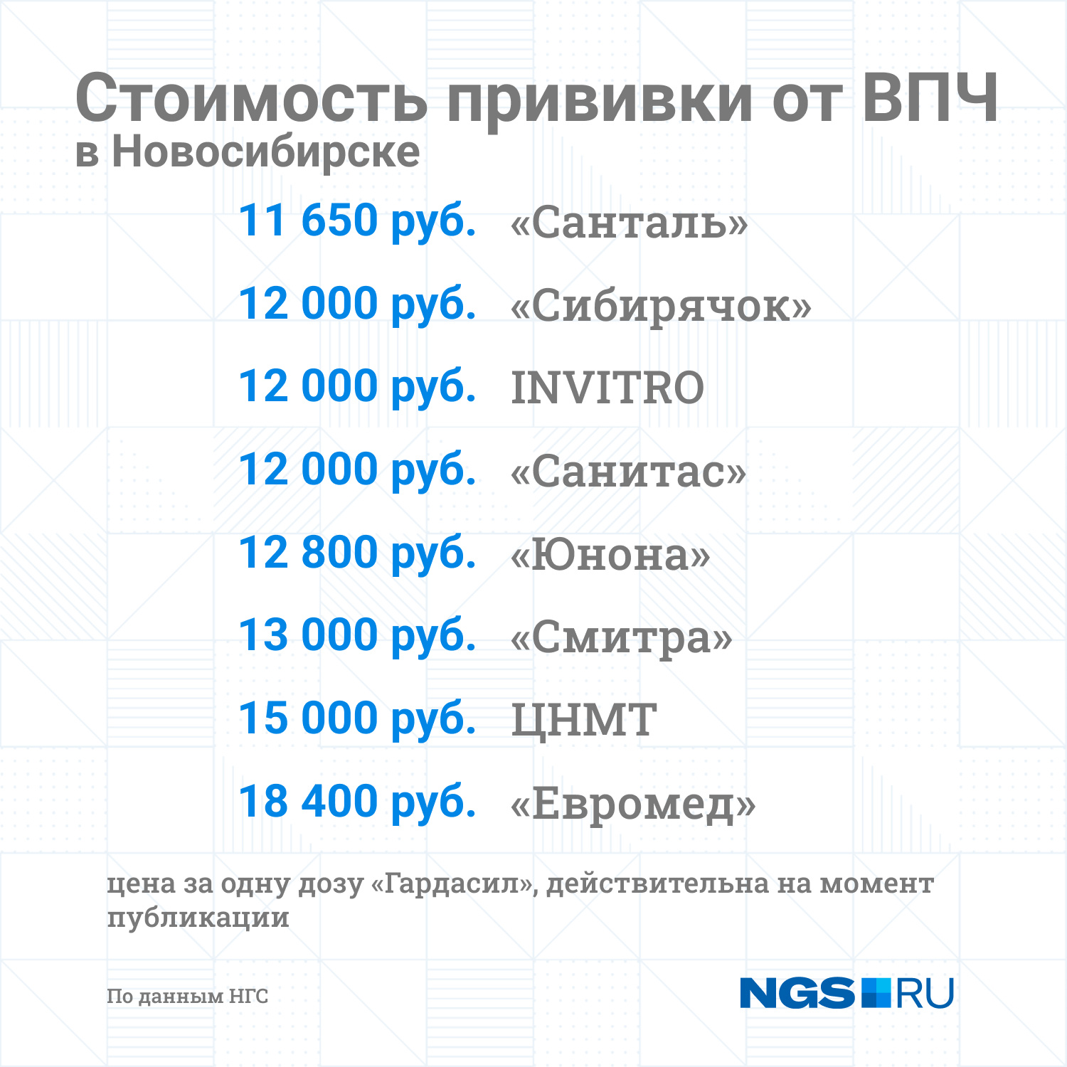 В среднем частные клиники в Новосибирске предлагают поставить вакцину за