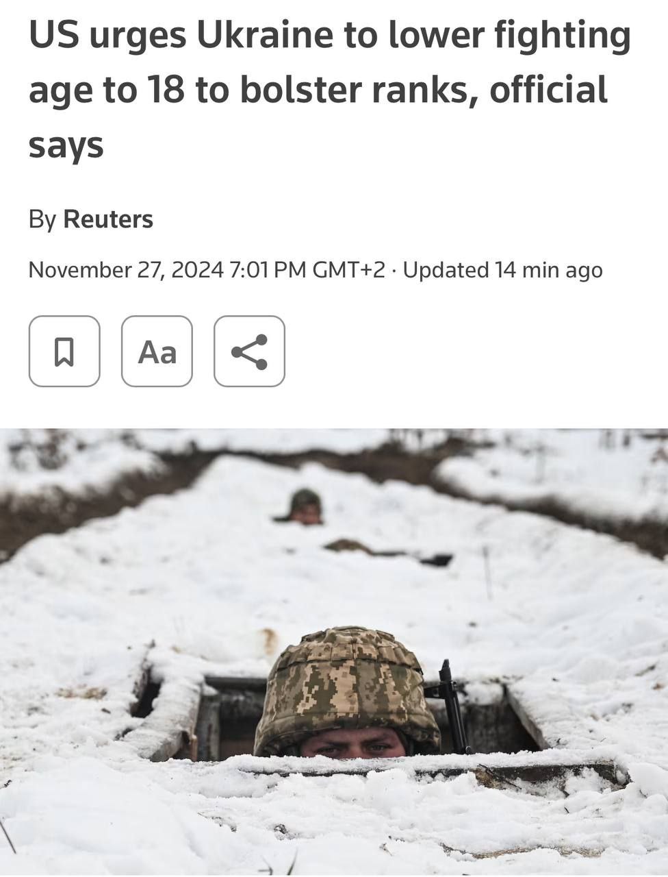 Недавно в США призвали Киев снизить возраст мобилизации с 25 до 18 лет.