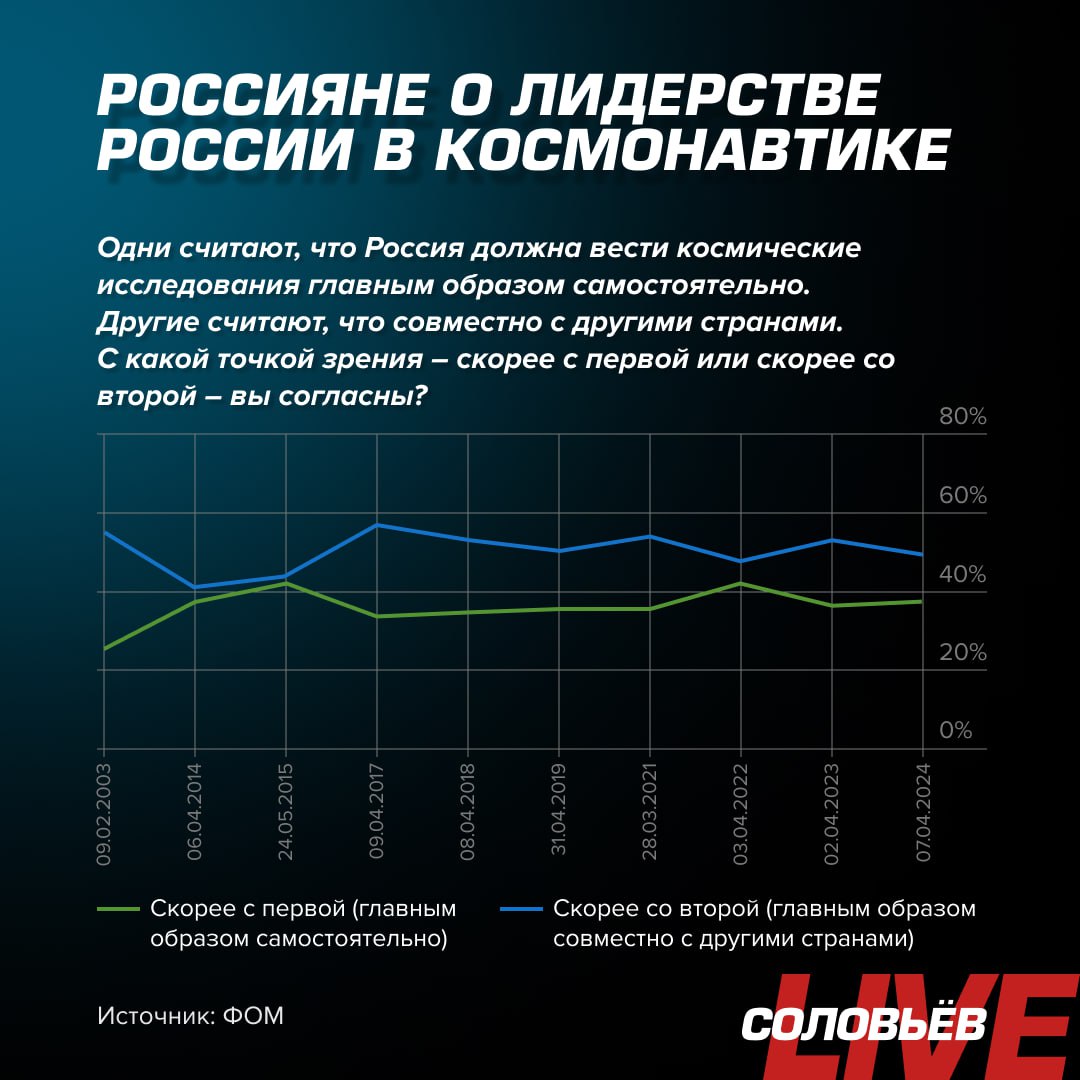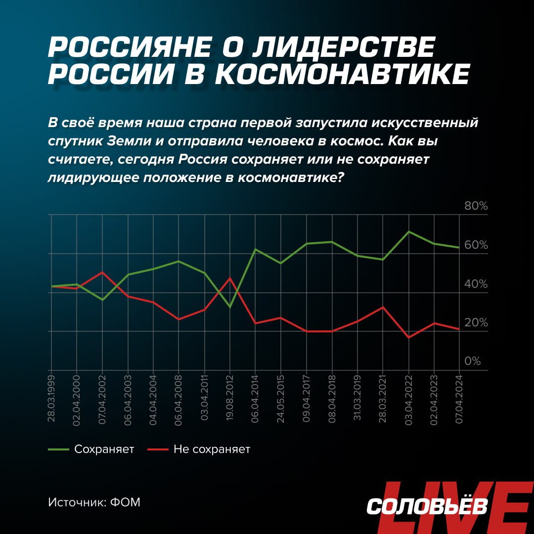 Опрос ФОМ: большинство россиян считают, что сегодня Россия сохраняет лидирующее положение в космонавтике