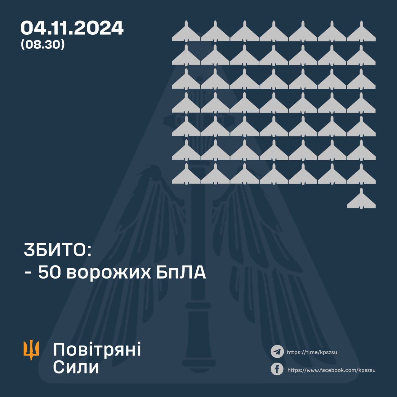 50 из 80 БПЛА сбила ПВО в течение ночи, — Воздушные силы