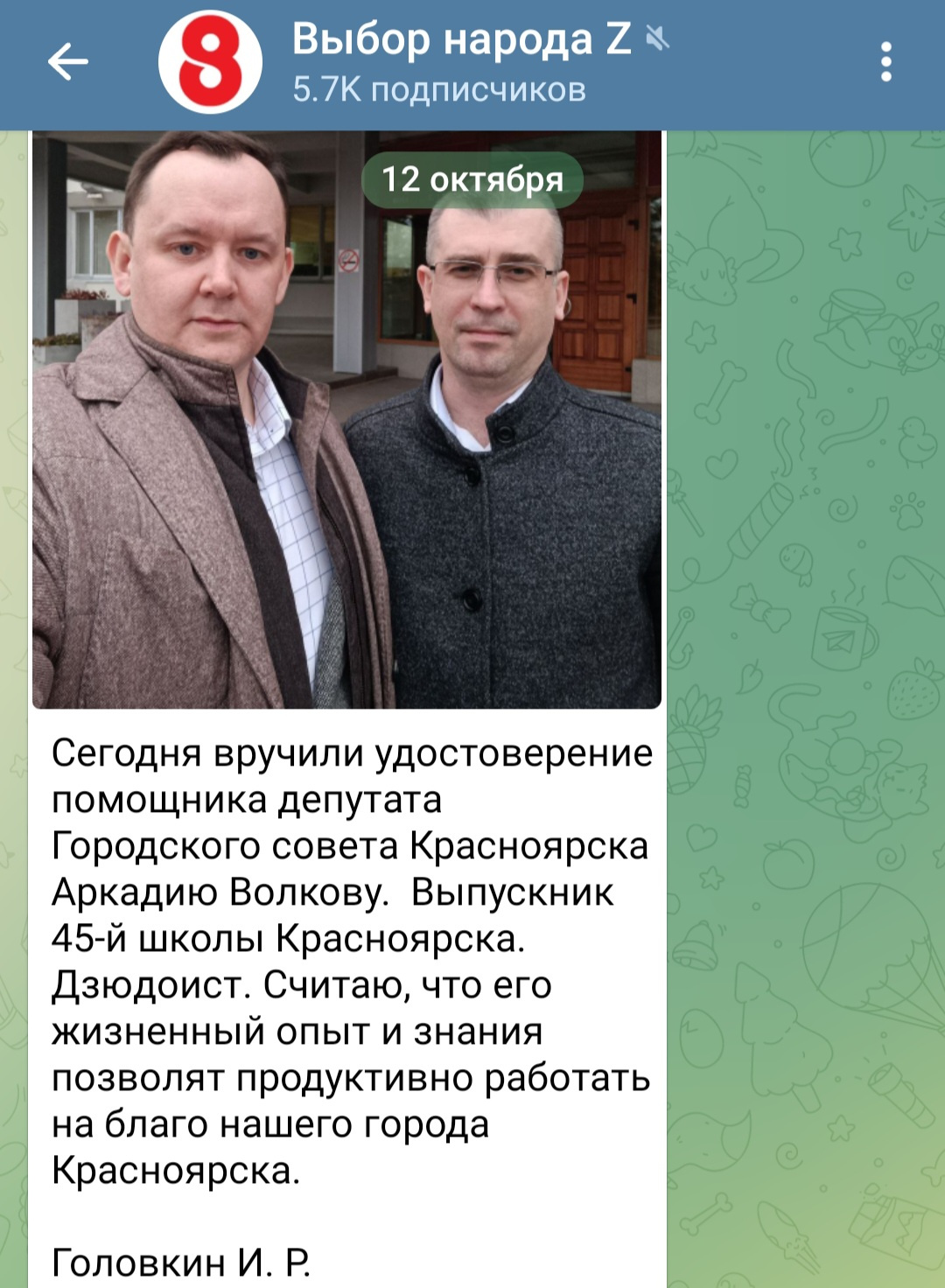 Освободившийся в этом году из колонии строгого режима Аркадий Волков стал помощником красноярского депутата. В помощники его взял гендиректор «