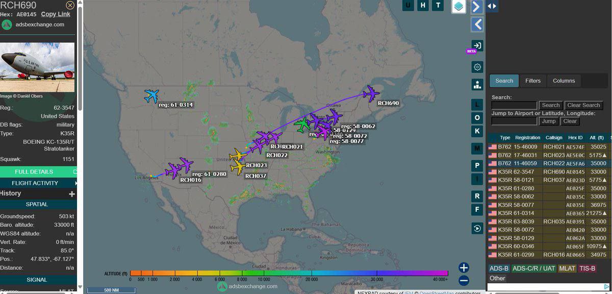 Согласно данным спутникового слежения, ударная группа авианосца USS Nimitz направляется на Ближний Восток, чтобы присоединиться к ударной группе авианосца USS Carl Vinson, уже находящейся в регионе. Ожидается, что переход займет около недели. Одновременно фиксируется рекордная переброска самолетов-заправщиков ВВС США в Европу. По данным трекинга, с различных баз США уже вылетели 20 самолётов KC-135 и 4 самолёта KC-46.