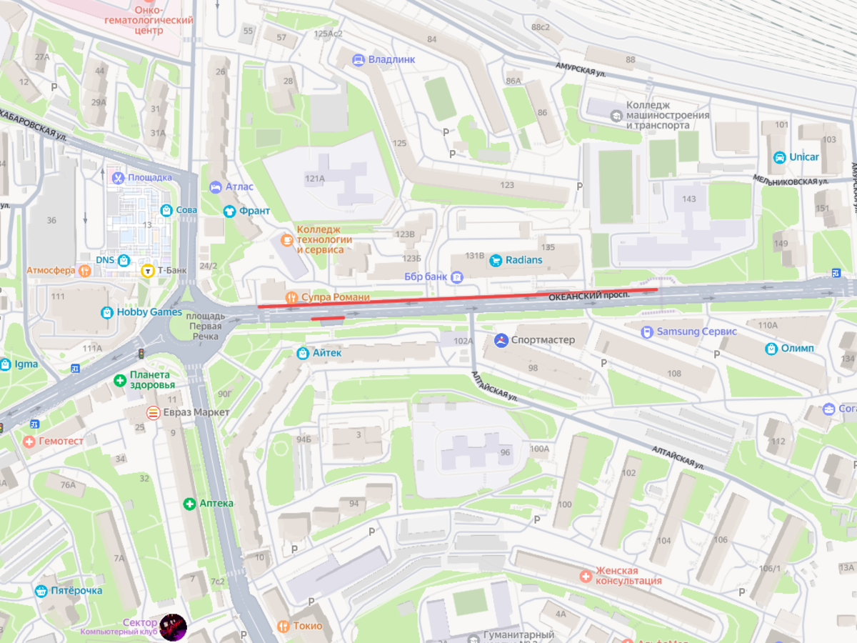 Новая зона платной парковки будет тянуться от кольца Первой Речки до перекрёстка с улицей Амурской, то есть до светофора. Поставить машину у бордюра за деньги можно будет только с одной стороны дороги, на другой парковаться запретят.