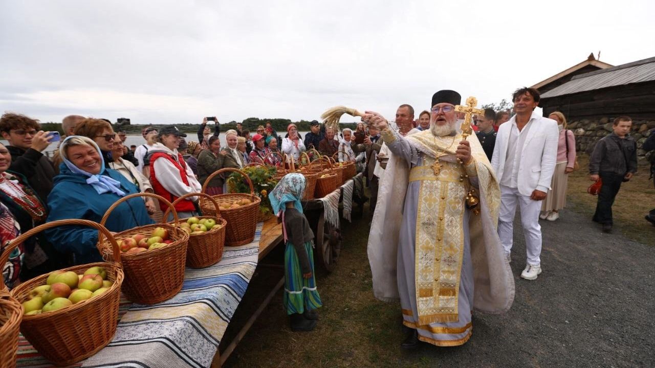 Элиссан Шандалович сердечно поздравил всех с праздником и пожелал здоровья, мира и крепости духа. Престольные мероприятия на острове Кижи начались литургией в церкви Преображения Господня, после чего состоялся крестный ход вокруг Кижского погоста. По традиции в день «Яблочного спаса» прихожан и гостей острова угостили освященными плодами нового урожая. Завершился день финалом фестиваля колокольных звонов «Кижский благовест» с участием ведущих звонарей России.