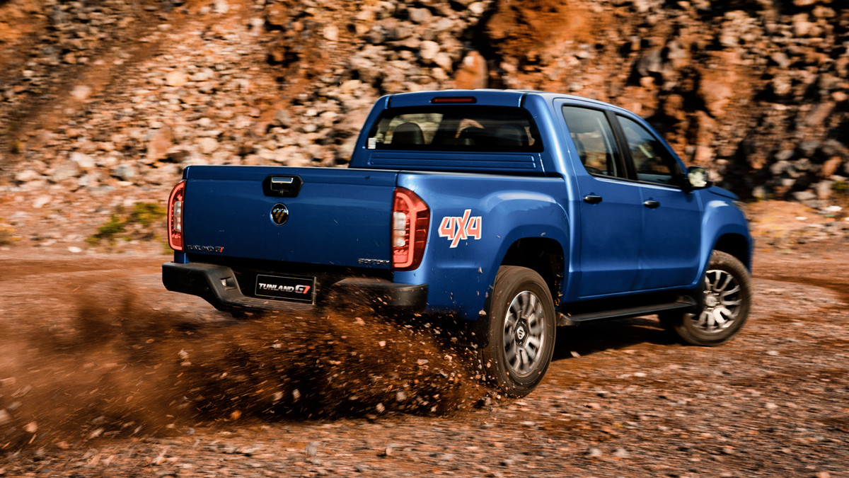 Длина импортируемого среднеразмерного пикапа Foton Tunland G7 составляет 5340 мм, ширина – 1940 мм, высота – 1870 мм, а расстояние между осями равно 3110 мм. Размеры грузовой платформы – 1520 х 1580 х 440 мм. Модель получила 18-дюймовые двухцветные колёсные диски, светодиодные дневные ходовые огни и задние фонари. В корпуса наружных зеркал интегрированы приветственные огни, облегчающие посадку в салон в тёмное время суток.