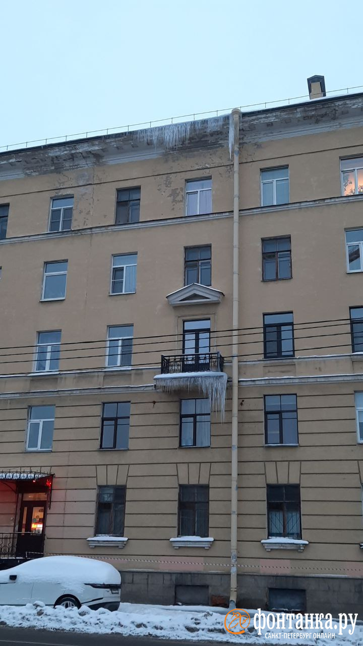 Опасные «украшения» на домах Петербурга. На Большом Сампсониевском выросла трехэтажная сосулька